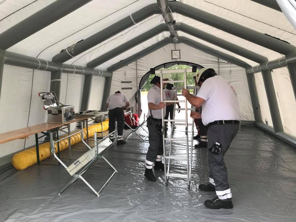 Um 17:34 Uhr wurde unsere SEG-Behandlung mit dem oben genannten Stichwort alarmiert. Unsere aktiven Einsatzkräfte machten sich schnellstmöglich auf dem Weg zum BRK-Kreisverband Schwandorf, um dort unsere Fahrzeuge zu besetzten. Neben der kompletten SEG-Behandlung (GW-San. 25 + MTW) stellten wir unseren Notfallkrankenwagen für den Einsatz zur Verfügung. Bereits 26 Minuten nach Alarm konnten wir uns auf den Weg zu dem uns zugewiesenen Platz, dem Gleisdreieck zwischen Krankenhaus St. Barbara und dem Beruflichen Schulzentrum Schwandorf machen. Innerhalb von 41 Minuten war die von uns errichtete Unfallhilfsstelle einsatzbereit, sodass die ersten Patienten übernommen werden konnten. Der gesamte Einsatz konnte nach einer ausführlichen Einsatznachbesprechung bereits gegen 20:30 Uhr beendet werden.